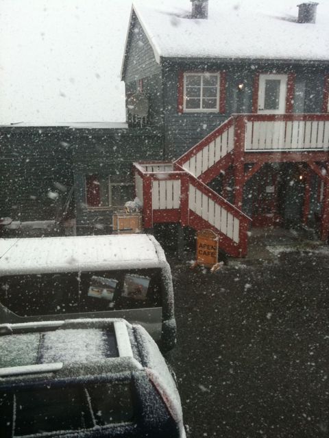 I am in a village called Dagali the coming days for a management meeting tomorrow and a company event the days after. It’s always good to see most of the colleagues at once (almost 100 will come!). Well, well, we were supposed to go rafting or outdoor karting on Friday, but (looking back) luckily the program got changed; it is 2 degrees and friggin’ SNOWING at the moment!! I ask you…the end of May!?! It’s welcome to Norway, eh? π